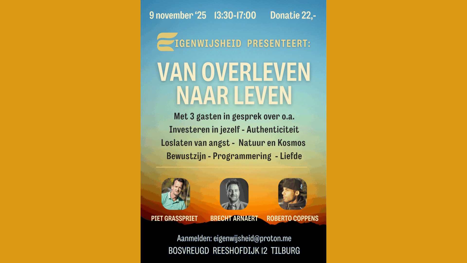 Laat je op zondagmiddag 9 november ’25 inspireren door Brecht Arnaert, Piet Grasspriet (Coen de Mooy) en Roberto Coppens. Deze…