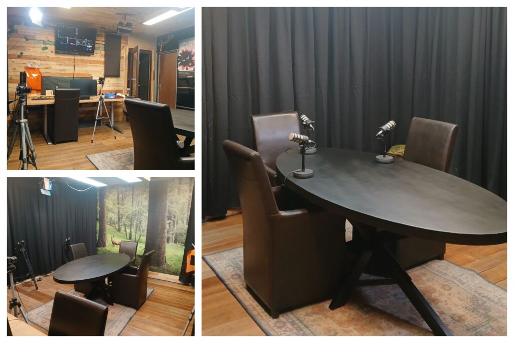 In de podcast studio worden meerdere vaste podcasts opgenomen. De ruimte is ook te huur voor diegene die zelf een podcast willen opnemen. Dit kan al naar gelang met of zonder na-montage.